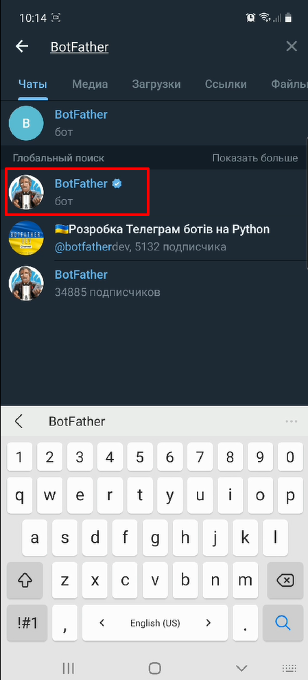 . Обратите внимание, что у официального бота Телеграм стоит подтверждающий знак галочки: