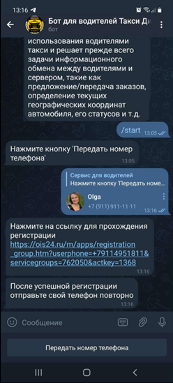 Бот попросит передать номер телефона. После нажмите на ссылку для прохождения регистрации: